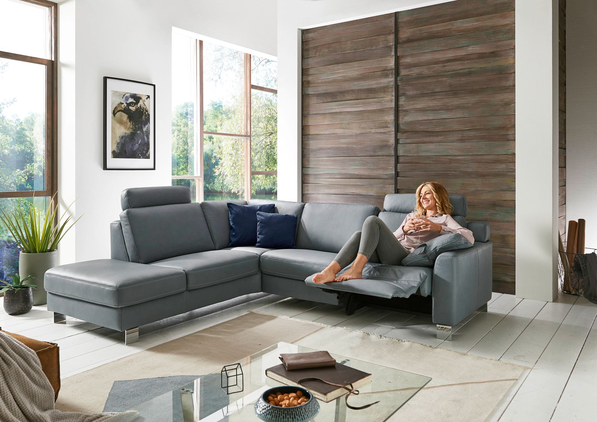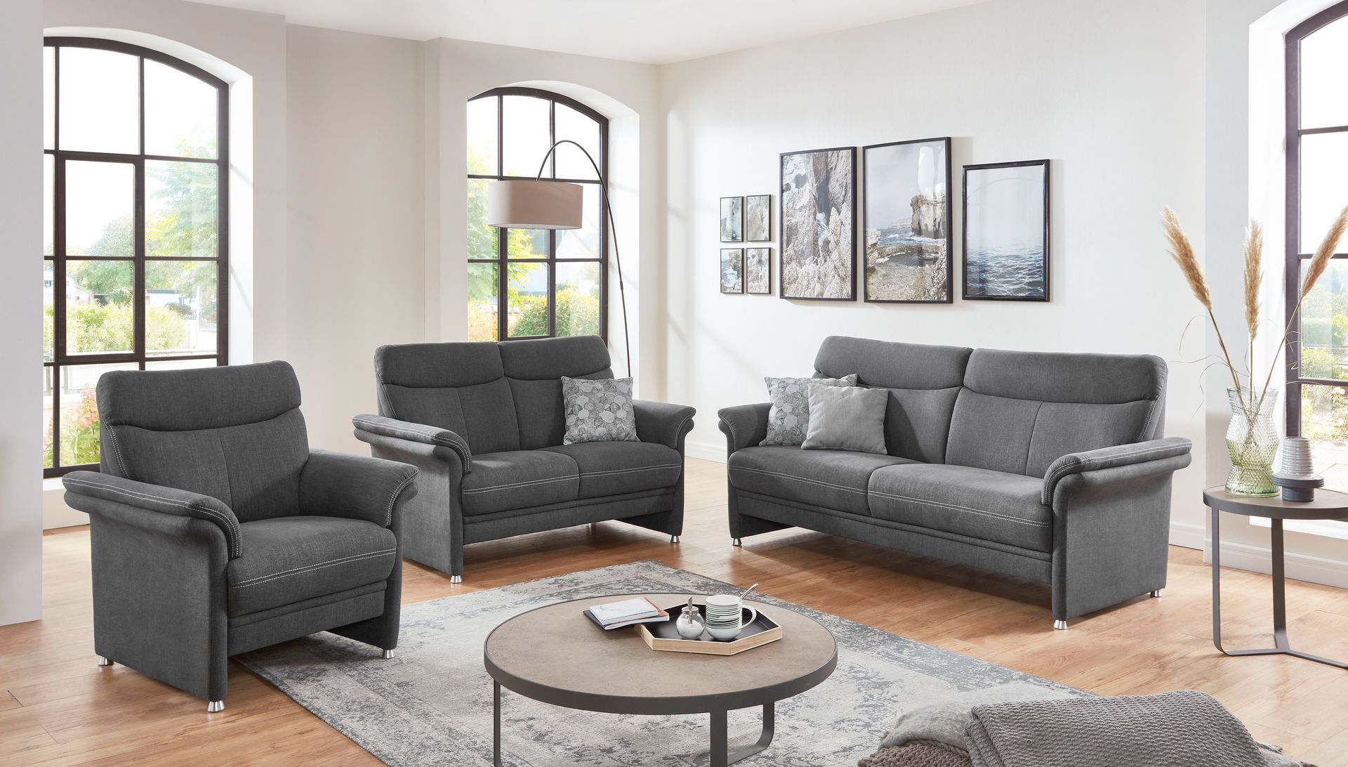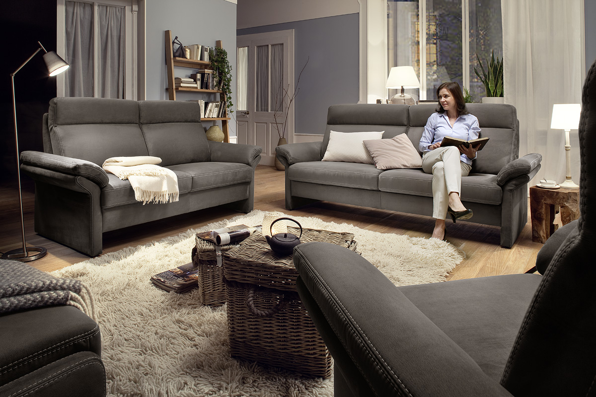 Und – sorgen Sie auch optisch für Harmonie: Die Modellauswahl, in der sämtliche Stilrichtungen vertreten sind, lässt keine Wünsche offen. Die ganz persönliche Note verleihen Sie Ihrem Sofa oder Ihrer Garnitur schließlich mit einem Bezug in Stoff oder Leder in Ihrer Lieblingsfarbe.